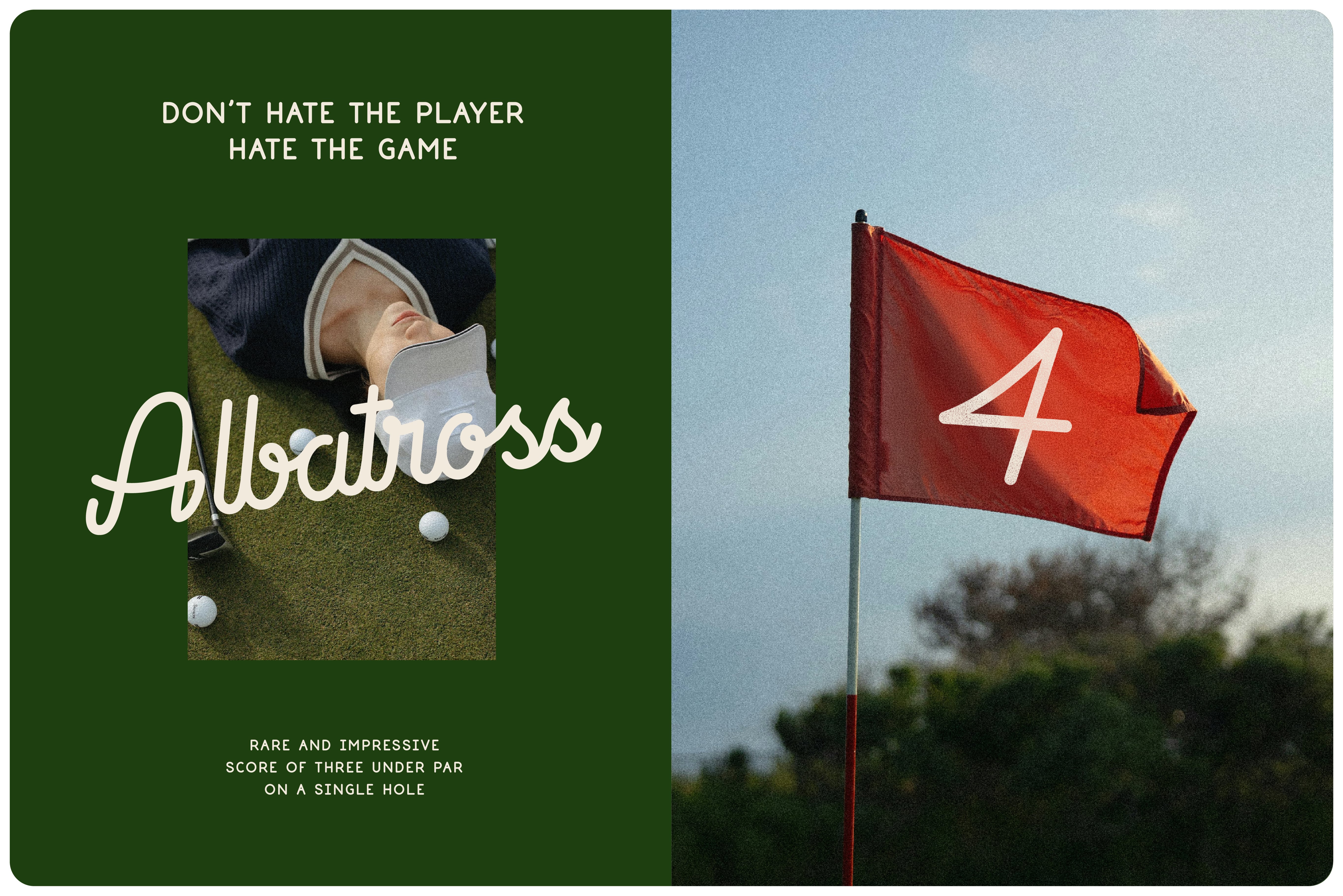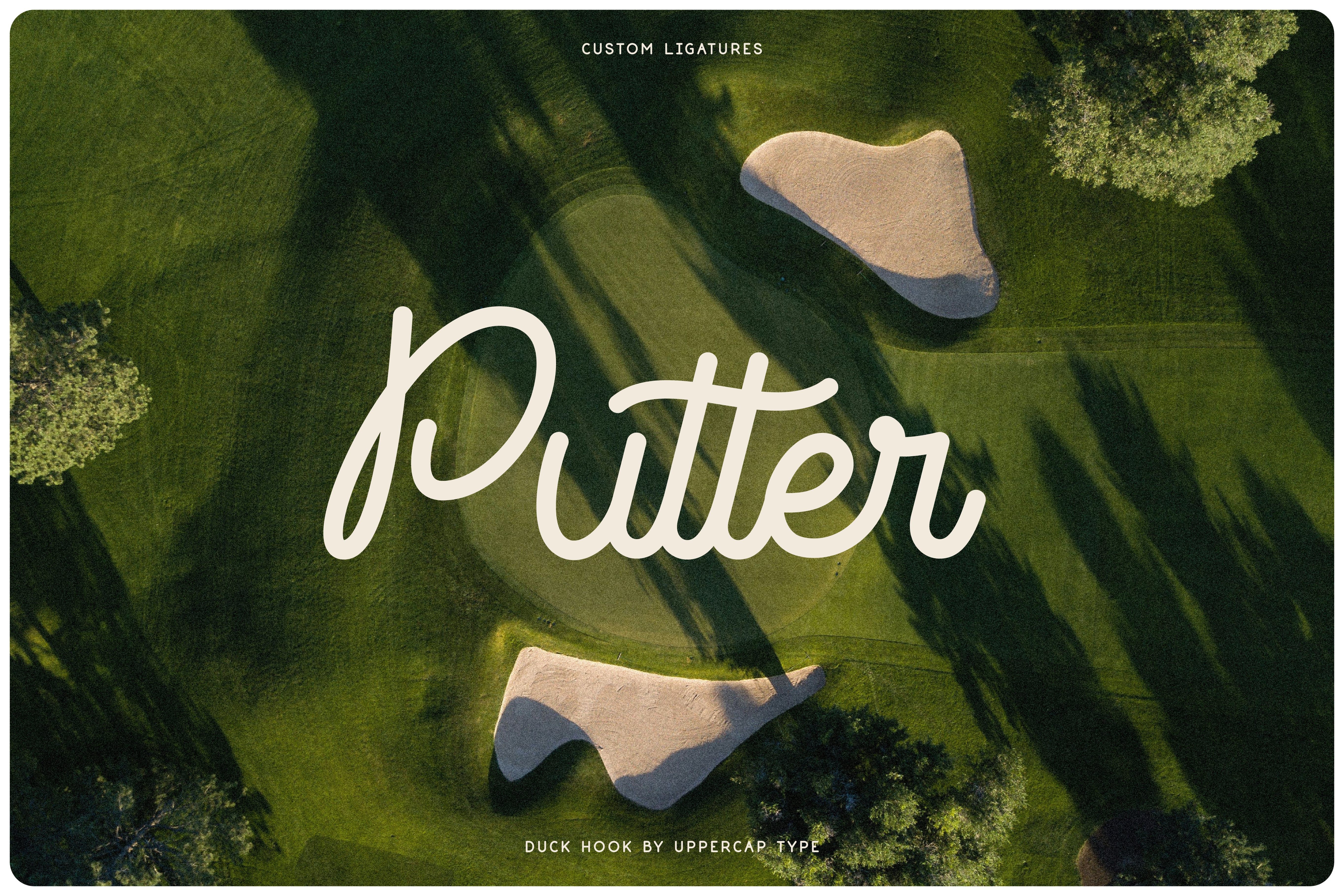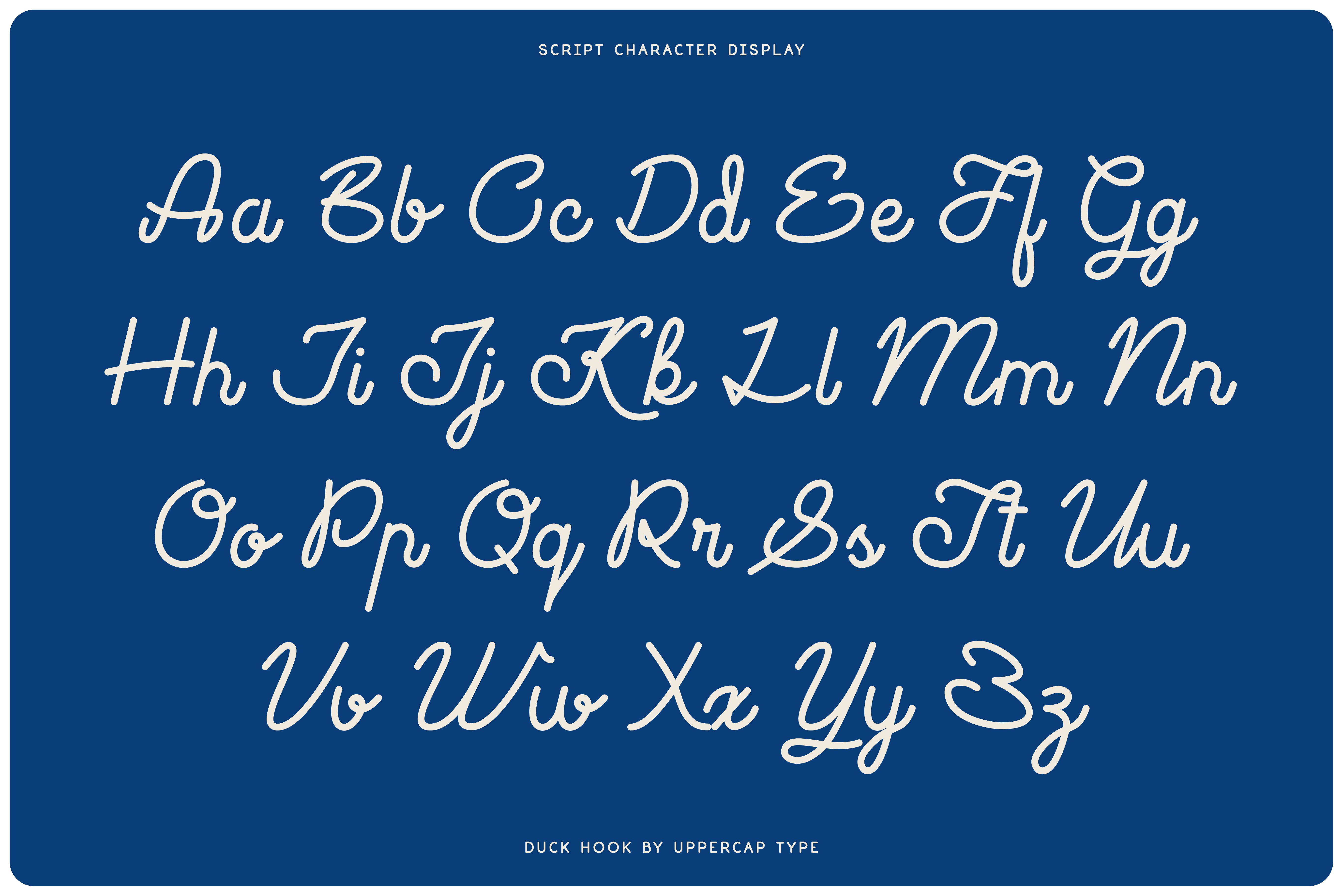 Introducing Duck Hook! A playful font duo inspired by the quirks and charm of golf. With a smooth monoline script and a clean sans, it's perfect for apparel, clubhouse menus, logo designs, posters, typographic layouts or just swinging your design game into full gear. Made by hand and includes all essential characters and punctuation.